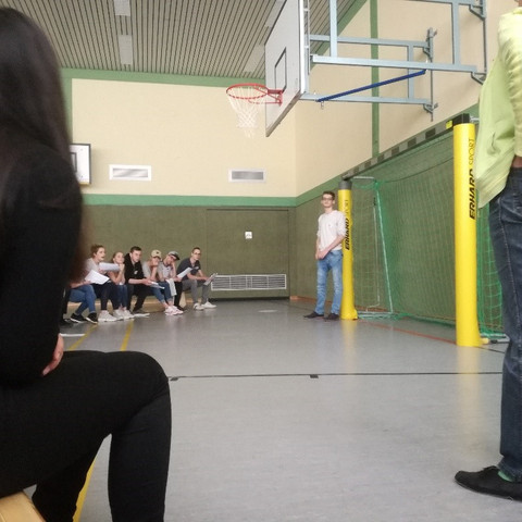 An diesem Tag setzten die beiden Englisch Leistungskurse der betreffenden Kurse sich nämlich gemeinsam mit den FachlehrerInnen Herrn Frenzel, Frau Wehren und Frau Selbach sowie der erfahrenen Mainzer Theaterpädagogin Sibylle Brandl auf praktische Weise und mithilfe theaterpädagogischer Methodik mit dem Werk und Wirken William Shakespeares auseinander.